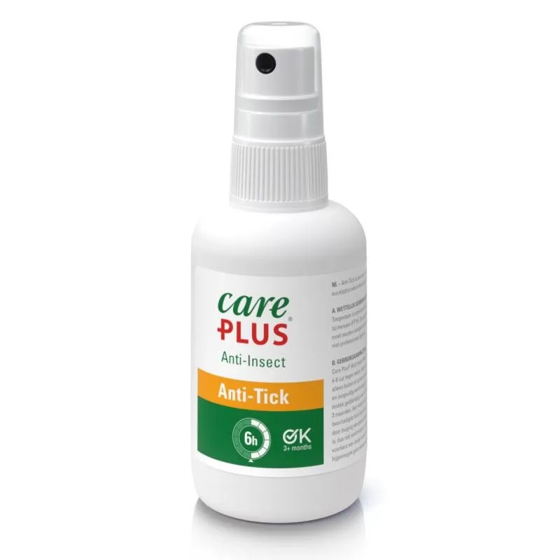 On en entend de plus en plus parler et pour cause : le risque de piqûre ou de morsure de tique est croissant. Or, les tiques font partie des principaux vecteurs de la maladie de Lyme (et de l’encéphalite). Si vous devez effectuer un voyage, partir en randonnée ou si vous prévoyez des vacances en camping, nous vous conseillons de prévoir un spray anti-tique parmi vos bagages : un répulsif anti-tique peut vous éviter bien des complications. Contenance du spray Care Plus Anti-Tick : 60 ml. Format : 12 x 4 cm. Poids : 75 grammes.