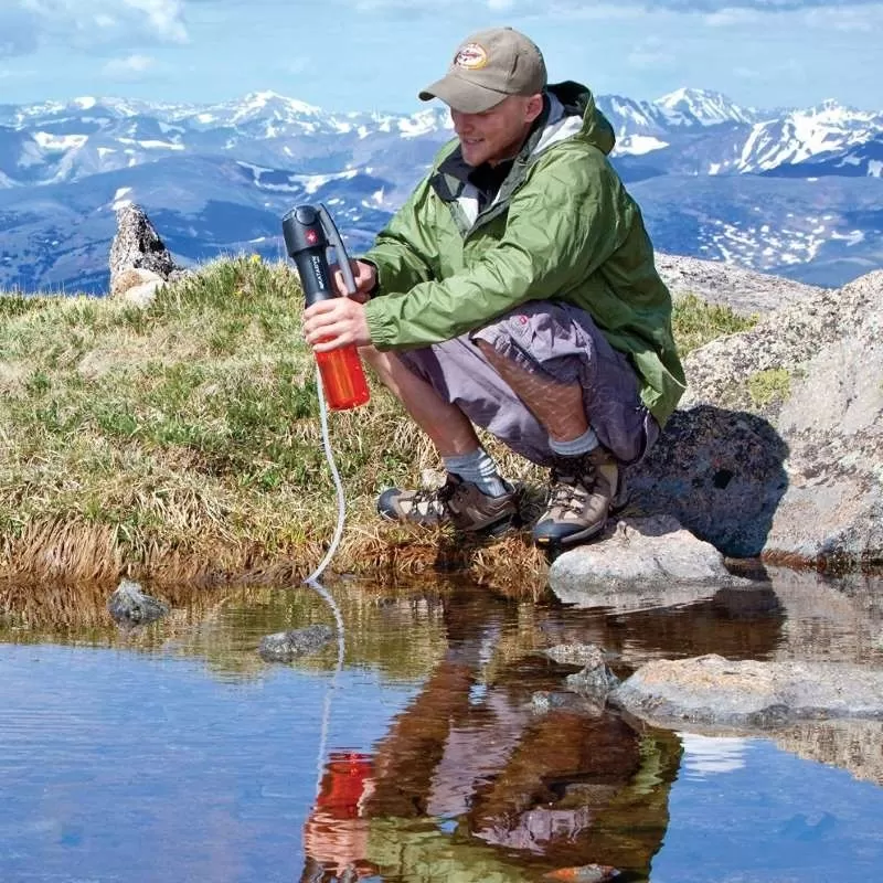 Outre un poids léger et un format compact, le filtre purificateur Vario de la marque Katadyn est polyvalent et simple à utiliser. Il offre un filtrage de l’eau à 3 niveaux via un filtre en fibre de verre à hautes performances, un pré-filtre céramique et un filtre par charbon actif (anti-odeurs). Si vous désirez filtrer quasi-instantanément un grand volume d’eau peu suspecte, réglez le filtre Vario de façon à n’utiliser que le filtre en fibres de verre et le charbon actif (réglage en mode Faster Flow). Au contraire, si vous êtes en présence d’une eau très turbide (eau très trouble, très chargée en matières en suspension), actionnez également le pré-filtre céramique (réglage en mode Longer Life). Vous vous adaptez ainsi à n’importe quelle situation.