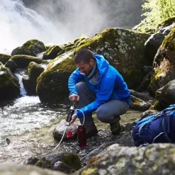 Stockez ou transportez jusqu’à 10 litres d’eau grâce au réservoir (inclus). Écartez toute bactérie et toute substance nuisible (protozoaire, kyste ou micro-organisme) grâce au filtre à eau Befree EZ-Clean, garant d’une haute filtration : il filtre à 0,1 micron. Pour information, les bactéries (par exemple) ne font jamais plus de 0,2 micron ce qui explique qu’elles ne peuvent pas passer au travers du filtre puisque celui-ci ne laisse passer aucune particule de plus de 0,1 micron. Bonne nouvelle : il est inutile de pomper pour obtenir de l’eau potable puisqu’il s’agit d’un système à écoulement par gravité, d’où l’appellation Gravity. Pour utiliser votre réservoir avec filtre Katadyn Gravity Befree 10L, il suffit de suspendre la poche à eau en hauteur, d’ouvrir le robinet d’arrêt et l’eau coule : pratique pour boire, nettoyer des ustensiles ou prendre une douche minimaliste. Autre bonne nouvelle : le filtre Befree EZ-Clean a une excellente autonomie (10000 litres) et il peut filtrer 2 litres d’eau en 60 secondes.