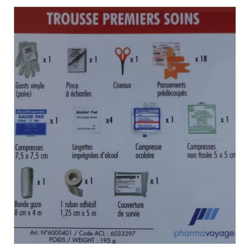 de la trousse de secours Premiers Soins Pharmavoyage